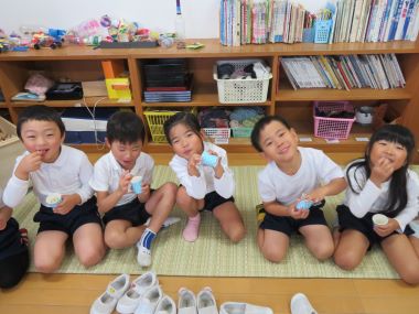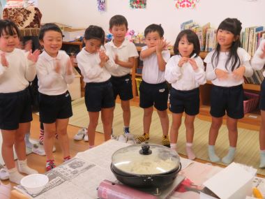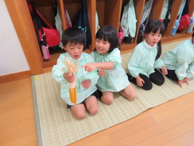 年長さんは園で育てたポップコーンを調理して皆で頂きました。