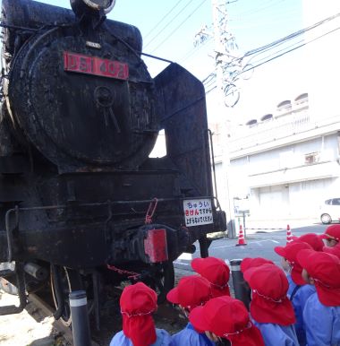年中さんは橋南公民館横のD51を見に行ってきました。