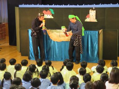 飯田市は人形劇の街です。こども達は年に数回人形劇を観る機会があります。これから飯田短期大学の2年生の人形劇、PTAのお母さん方の「きらきら座」の人形劇も見せて頂く予定です。