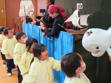 未満児は『ふわふわ劇場』、3歳以上児は『ぼくはかいぞく!キャプテンプチャプチャ』を見せていただきました。