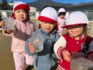 寒い冬ですが、かき氷を作って遊んだそうです。
