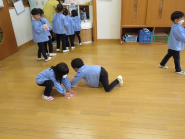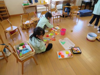 お道具箱の整理です。遊びの中でつくったものを片付けたり家に持ち帰ったりして、自分なりに整理整頓しているようです。