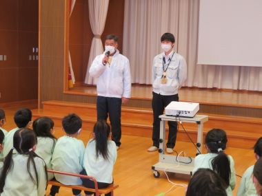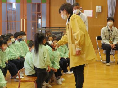こども達からの「干し柿の白い粉は何ですか?」「どうして市田柿っていうのか?」などの質問にお答えいただきました。