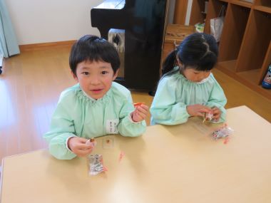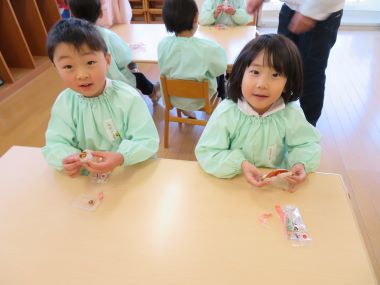 市田柿は、ヨーグルトに混ぜたりお菓子の材料としたりと食べ方も様々にあるようです。年長さんは今日の事をお家の方に話をしてみて下さい。