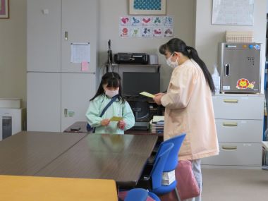郵便屋さんごっこも始まりました。1階のフリースペースにポストがあり、ハガキを入れると郵便屋さんが届けてくれるんです。