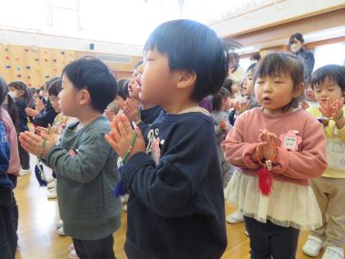 2歳のお友だちもお念珠を手に掛けて上手にお参りできていました。