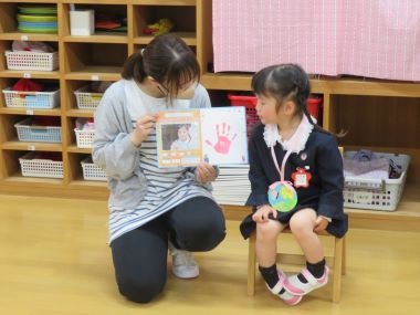 保育室に戻ってからは、クラスでの誕生会。先生からプレゼントをいただきます。