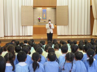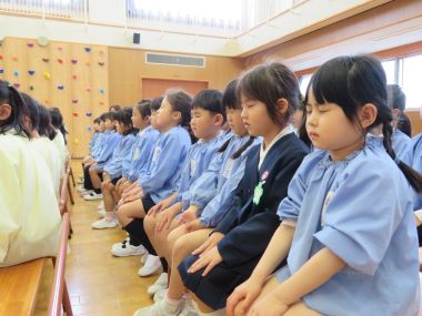園長先生からお話をして頂きます。4月は春、園のクラス名も花の名前が付いていることをお話頂きました。