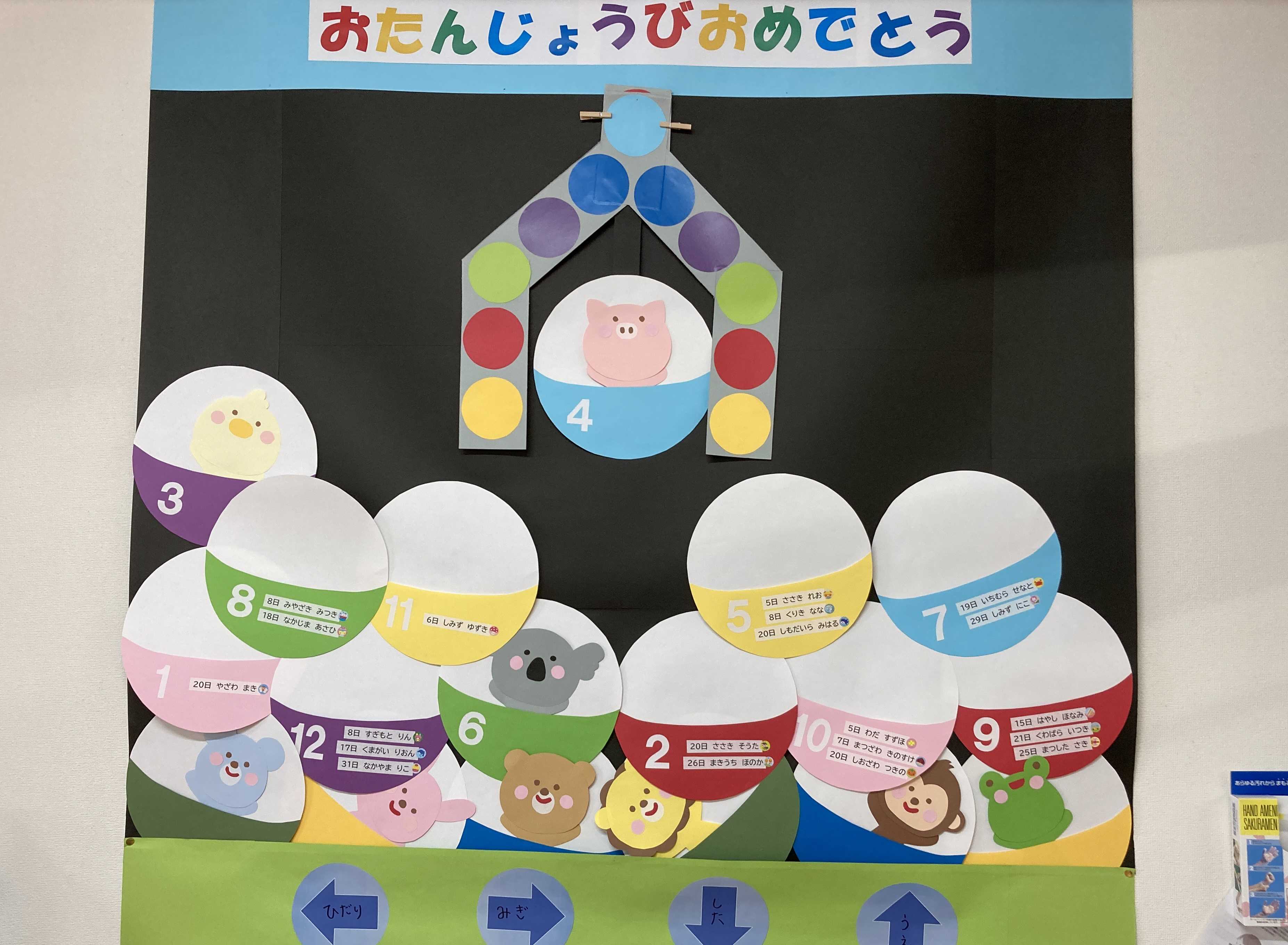 各お部屋の壁にはそれぞれのクラスごとに工夫された“誕生表”があります。