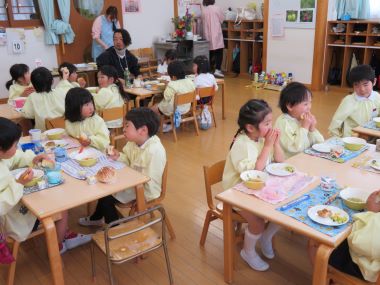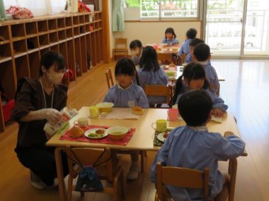 誕生者の保護者の方には「おとうさん先生」「おかあさん先生」として保育参加として給食の配膳やおそうじ等もしていただきました。