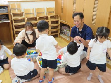 おとうさん先生・おかあさん先生は大人気です。こども達と一緒に遊んで下さいました。