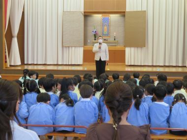 誕生者の保護者の方にもご参加いただきました。園長先生からお話をして頂きます。