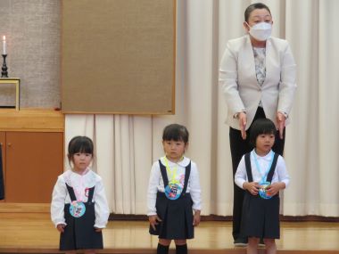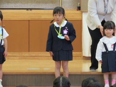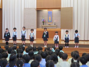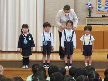 年少さんは3名で、合わせて8名のお友だちでした。みんな上手にステージに立ってお祝いしてもらいました。