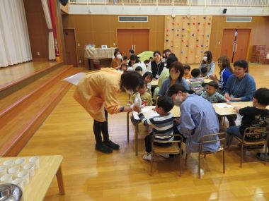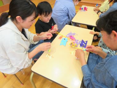 同じ机のお母さん方も話をしながら和気あいあいと作る姿がありました。