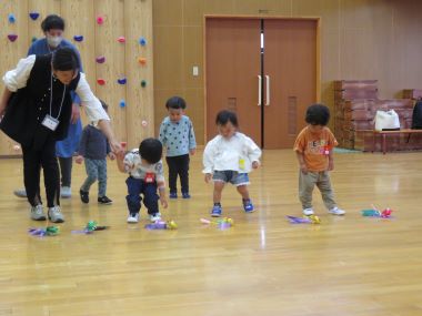 「よういどん!」をしてこいのぼりを取ってゴールで待つお母さんの所まで走っていきます。