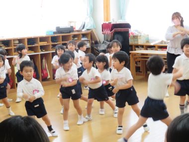 こいのぼり運動会で行った「ジャングル体操」 お友だちと元気よく身体を動かす姿もも見ていただきました。