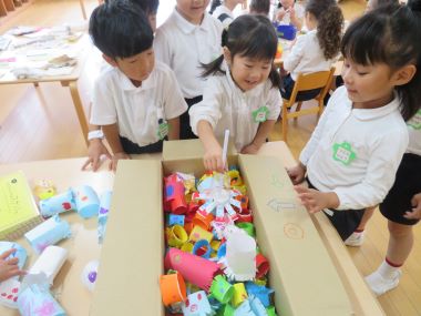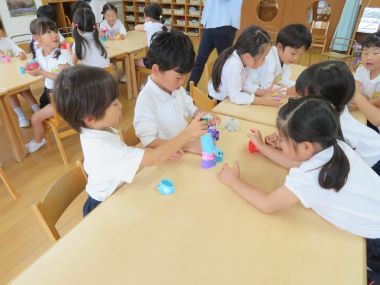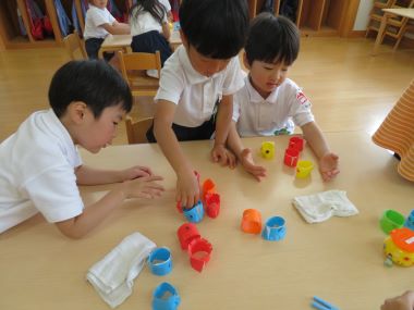 作ったタコをグループのお友だちと合わせて皆で積み重ねたりして遊びました。