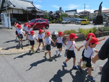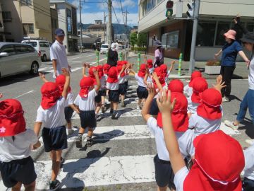 年長さんは1年生になると自分で道路を歩いて登下校するようになります。お家の方と実際に歩きながら、安全な歩き方を確認し身につけていってください。園外保育の際にも確認していきたいと思います。
