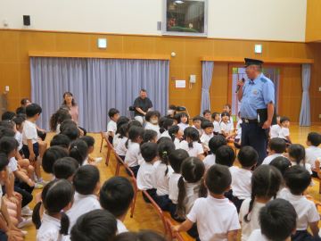飯田駅前交番の西澤署長さんにお越しいただき、「交通ルール」についてお話を頂いたりどうして守るのかなど、分かりやすくお話頂きました。