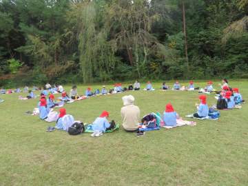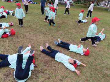 2学期の様々な行事や運動会を経験したどもたちは、長い距離や坂道を歩くことができ体力もついてきたことを感じました。秋の自然に触れながら広い短大のグランドでのびのび遊ぶことができ、いい遠足になりました。お家の方には、お弁当の準備等ありがとございました。