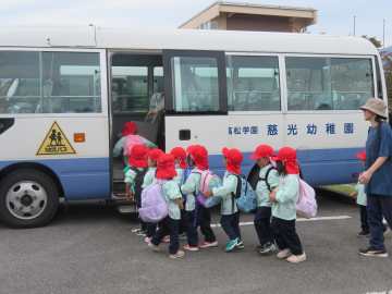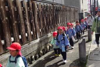 帰る時間です。年少さんはバスに乗って園まで帰ります。バスに乗れることも楽しみなこども達でした。年中さんと年長さんは歩いて伊那八幡駅まで向かいます。