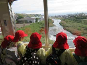 年中・年長さんは、電車に乗って飯田駅から園まで歩いて帰ってきました。暑いくらいの1日でしたが最後まで歩き切り、園についてから出迎えて下さった園長先生に褒めていただきました。