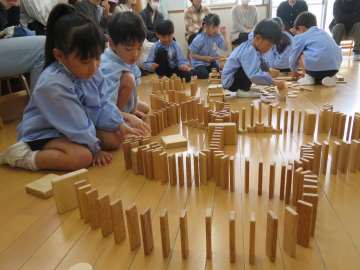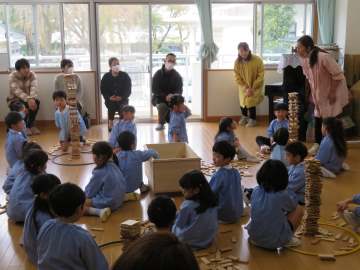もみじ組は、積み木で遊ぶ様子をみていただきました。年長さんの発想はすごく、様々なものを積み木で作っていました。