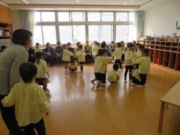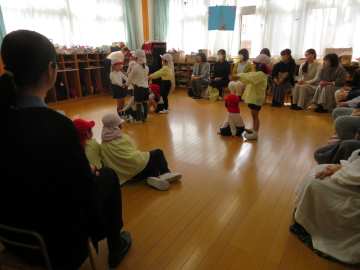 じゃんけんが分かり、勝ち負けもある遊びですがお友だちと一緒に楽しむ姿を観ていただけました。
