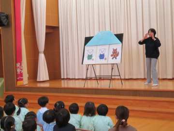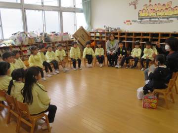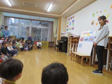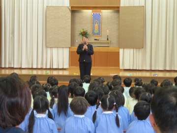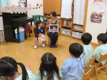 年少・年中の保護者の方からはお子さんの小さかった時の写真や身につけていたものを見せていただいたり、年長さんは名前の由来をお話いただきました。