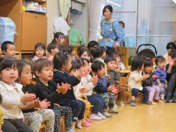 未満児のお友だちは、たんぽぽの保育室で誕生会を行いました。
