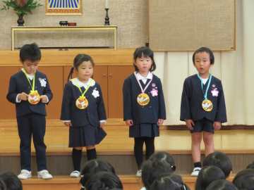 年中さんは4人、年少さんは1人でした。上手にステージに立つことができました。