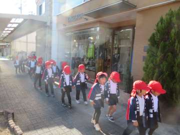 年長さんは、「秋の火災予防運動(9日~15日)」にちなみ、園周辺の地域の方に「防火」を呼びかけました。
