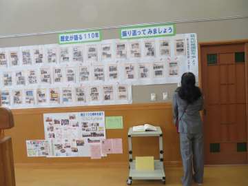2階のフリースペースには、「110周年写真展」として110枚の卒業写真が飾られていたり、110年の歴史を振り返る展示があり、保護者や地域の方も見に来て下さいました。