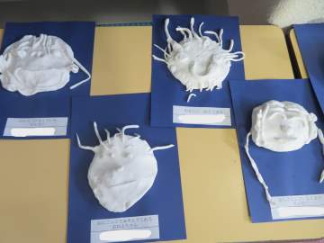 ねんどの「かお」は、ねんどを伸ばしたり丸めたりしながら、作る人の顔を思い浮かべながら作りました。