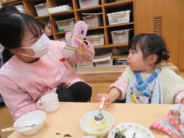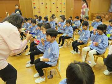 12日は年長さんと未満児、さくらんぼさんもいただき、19日に年中・年少さんが行いました。