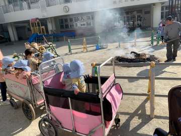 年長さんが育てて掘って来てくれたお芋で焼いもをしました。