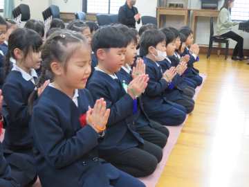 年少さん、年中さんもそれぞれ本堂に集まり、園長先生のお話を聞きました。