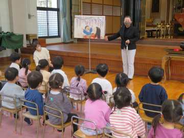 年長さんの後は2歳児さんが本堂に入り、「しんらんさま」のお話を園長先生から聞きました。