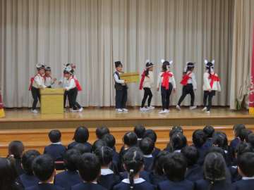 きく組の劇は「ももたろう」。鬼との闘いはどう決着がつくのでしょうか。お楽しみになさって下さい。