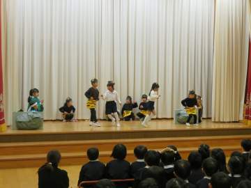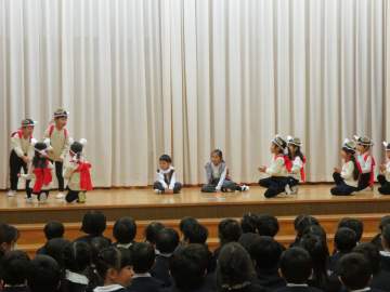 もみじ組の劇は「おむすびころりん」です。役になり切って演じる楽しさも感じてきています。