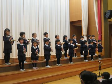 年中さんは、クラス毎に歌と合奏をしました。