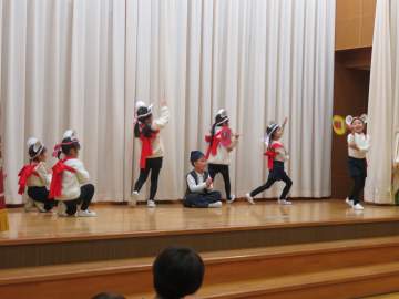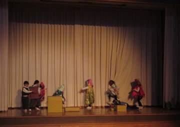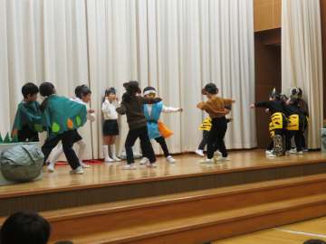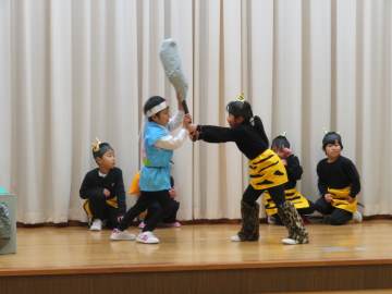 年長さんは、クラス毎に劇をしました。今年はどちらのクラスも日本の昔話でしたが、どちらもクラスカラーが出た劇を見せてくれました。