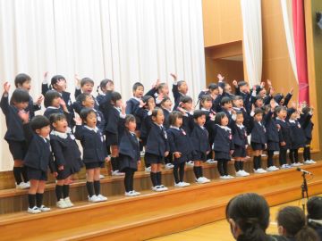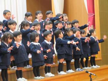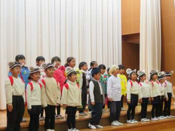 お友だちと音や声を合わせる楽しさや気持ちよさを味わっているこども達です。普段通り、年中さんの元気よく歌う姿が見られました。