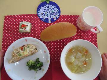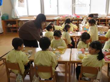 「おとうさん先生」「おかあさん先生」の保護者の方にお手伝いいただき、給食の配膳をしました。