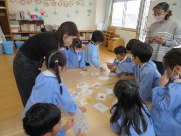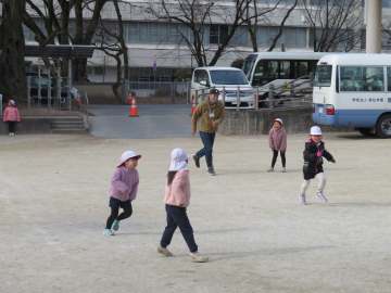 食後は一緒に遊んでいただきました。かるたを楽しんだり、冬の寒い日ですが鬼ごっこをしたりしてこども達の遊びの様子を見ていただきました。