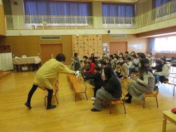 人形劇は、地域の方や園の2歳のお友だちも一緒に観ました。