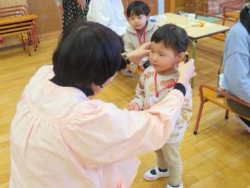 お友だちの名前を呼ぶと、みんな元気に手をあげたり返事をしてくれました。大きくなったね。