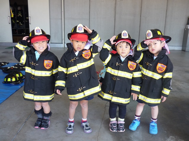 ちっびこ消防士さんたち。「火事を起こさないように、ぼくたちもがんばります!」
