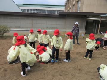 年長さん、芋畑へ