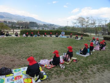 農場見学の後には、近くの矢高公園まで移動し、皆でお弁当をいただきました。お母さん、お父さんがつくってくれたお弁当を、大事においしそうに食べていました。